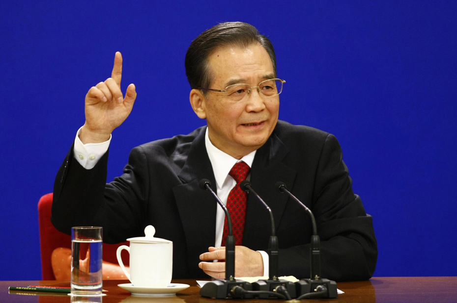 3月14日上午,國(guó)務(wù)院總理溫家寶在人民大會(huì)堂三樓金色大廳與采訪十一屆全國(guó)人大三次會(huì)議的中外記者見面并回答記者提出的問題。中新社記者 杜洋 攝 圖片來源:中國(guó)新聞網(wǎng)