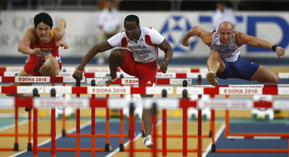 在14日晚間結(jié)束的多哈室內(nèi)田徑世錦賽60米欄決賽中,劉翔僅僅以7秒65的成績獲得第七名。古巴選手羅伯斯則以7秒34成績奪得冠軍并打破室內(nèi)世錦賽賽會(huì)紀(jì)錄。圖片來源:中國新聞網(wǎng)
