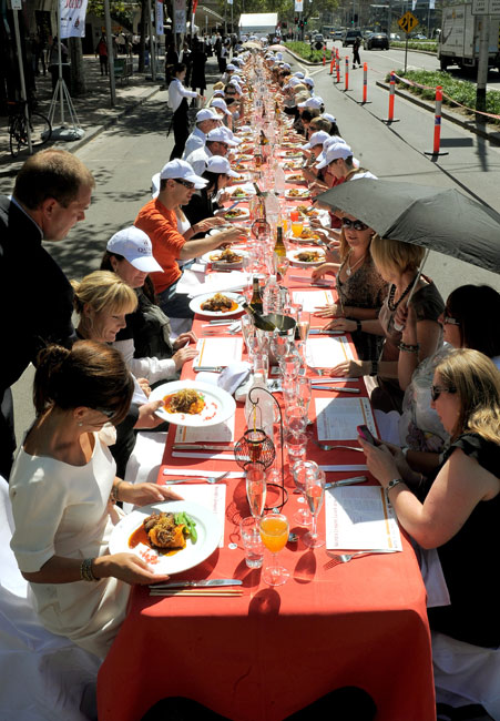 近日,澳大利亞墨爾本,人們?cè)谔?hào)稱“世界上最長(zhǎng)的午餐”活動(dòng)中享受美味佳肴。圖片來(lái)源:中國(guó)新聞網(wǎng)