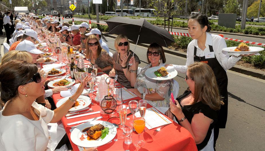 近日,澳大利亞墨爾本,人們?cè)谔?hào)稱“世界上最長(zhǎng)的午餐”活動(dòng)中享受美味佳肴。圖片來源:中國新聞網(wǎng)