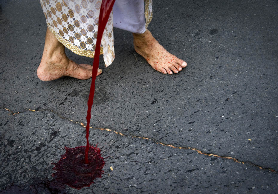 泰國反政府組織“紅衫軍”成員將血液潑灑在曼谷總理府門前,以此向政府施壓要求解散國會下議院。圖片來源:中國新聞網(wǎng)