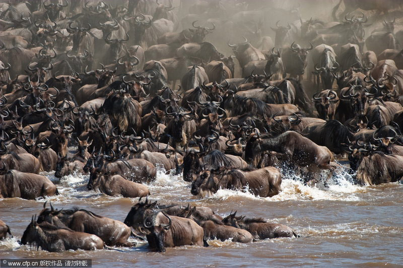 3月17日消息,捷克野生動(dòng)物攝影師瓦拉夫·希爾哈(Vaclav Silha)在肯尼亞馬賽瑪拉(Masai Mara)國家保護(hù)區(qū)拍到了罕見的牛羚大遷移場(chǎng)面。上百萬牛羚集體穿越馬拉河,同時(shí)為了防止被水中的鱷魚咬到及逃避岸邊叢林里的老虎,牛羚群制造出巨大的聲響并急沖到對(duì)岸。barcroftmedia/CFP