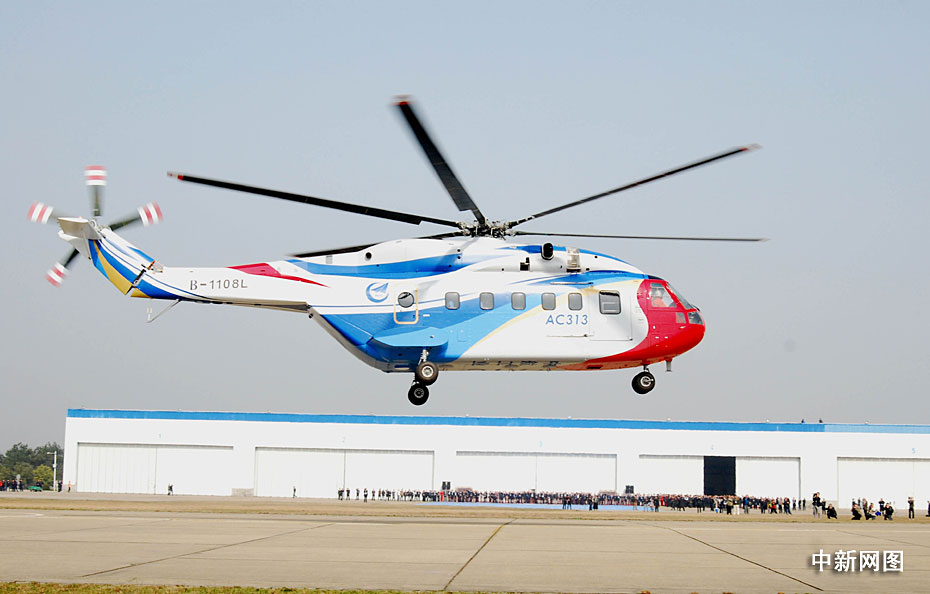 3月18日上午,中國首架大型民用直升機AC313在江西省景德鎮(zhèn)市成功首飛,標志著中國和美、歐、俄一樣具備了自主研制大型直升機的能力。圖片來源:中國新聞網