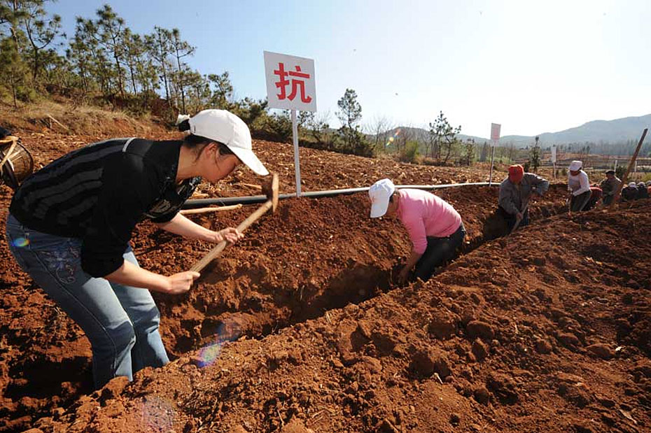 中國西南部分地區(qū)遭受了六十年甚至百年一遇的特大旱災(zāi),給春耕備耕帶來不利影響。受災(zāi)各地民眾在當?shù)卣膸ьI(lǐng)下打響了萬眾一心降伏旱魃的戰(zhàn)役。