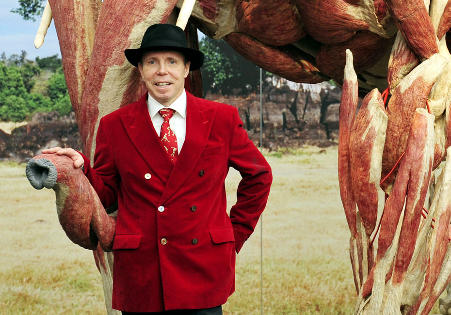 德國著名解剖學(xué)家鞏特爾·馮·哈根斯博士被稱為“死亡先生”,目前展出的是有史以來的最大的動(dòng)物尸體。體型巨大的“桑芭”尸體高3.5米,重3.2噸。據(jù)悉“桑芭”將于2010年4月歸還諾因基興動(dòng)物園。圖片來源:中國新聞網(wǎng)
