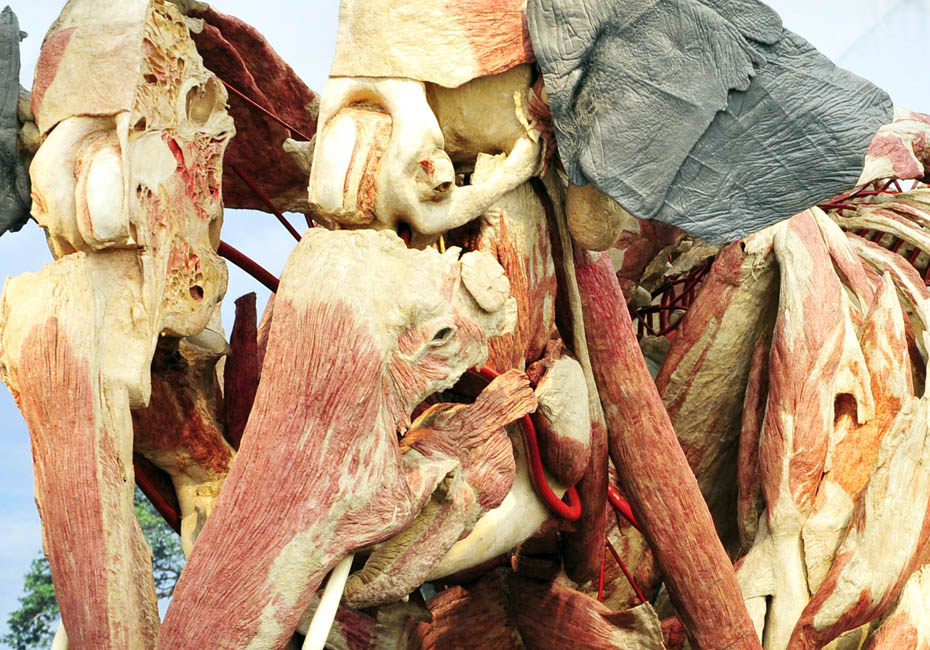 德國(guó)著名解剖學(xué)家鞏特爾·馮·哈根斯博士被稱(chēng)為“死亡先生”,目前展出的是有史以來(lái)的最大的動(dòng)物尸體。體型巨大的“桑芭”尸體高3.5米,重3.2噸。據(jù)悉“桑芭”將于2010年4月歸還諾因基興動(dòng)物園。圖片來(lái)源:中國(guó)新聞網(wǎng)