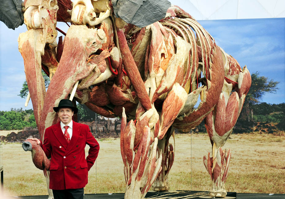 德國(guó)著名解剖學(xué)家鞏特爾·馮·哈根斯博士被稱為“死亡先生”,目前展出的是有史以來(lái)的最大的動(dòng)物尸體。體型巨大的“桑芭”尸體高3.5米,重3.2噸。據(jù)悉“桑芭”將于2010年4月歸還諾因基興動(dòng)物園。圖片來(lái)源:中國(guó)新聞網(wǎng)