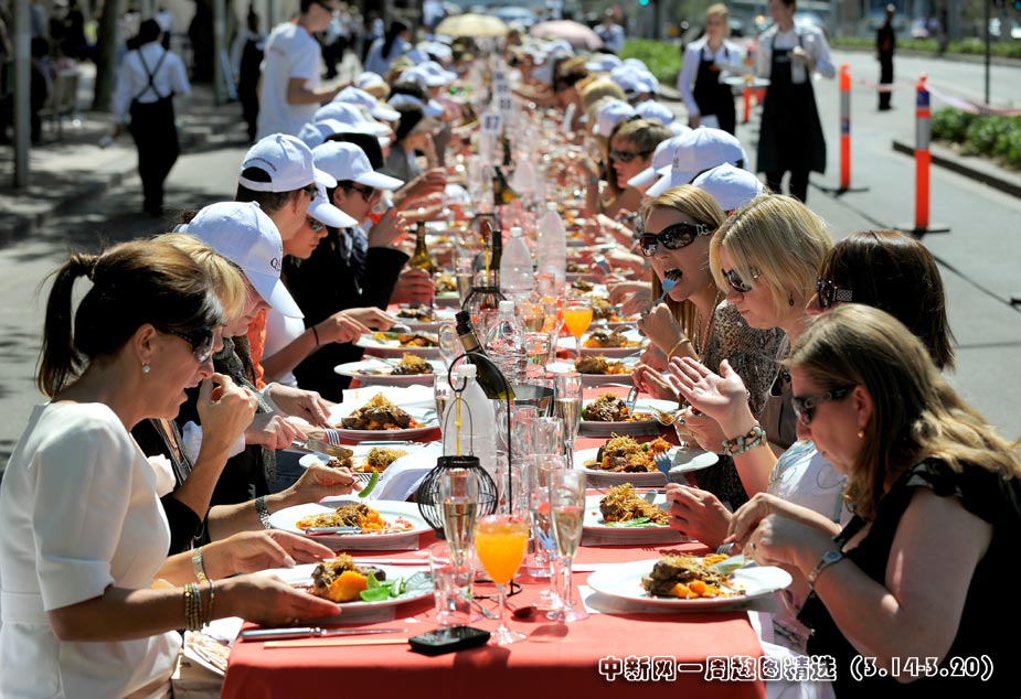 近日,澳大利亞墨爾本,人們在號稱“世界上最長的午餐”活動中享受美味佳肴。圖片來源:中國新聞網(wǎng)>>點擊觀看詳細內(nèi)容