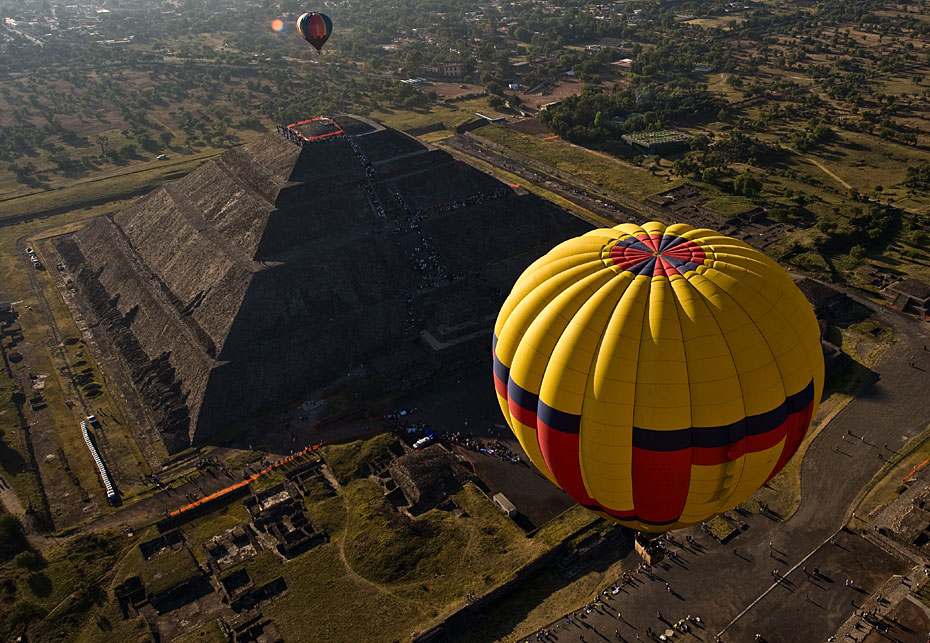 當?shù)貢r間3月21日,熱氣球從墨西哥特奧蒂瓦坎上空飛過。墨西哥近日在特奧蒂瓦坎附近舉行熱氣球節(jié)迎接春分的到來。圖片來源:中國新聞網(wǎng)