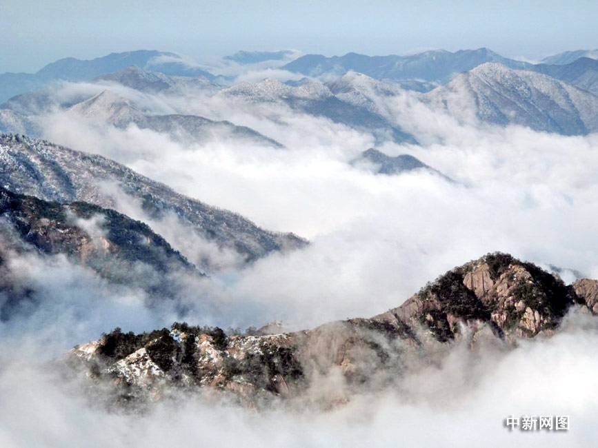3月25日,春雨初霽,安徽黃山風景區(qū)綻放壯美云海,游眾置身忘懷“人間仙境”。 圖片來源:中國新聞網