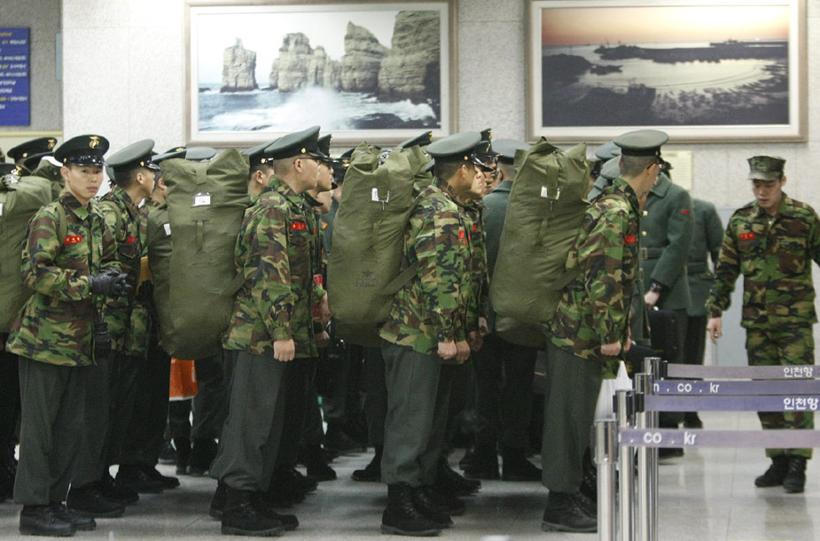 首爾當(dāng)?shù)貢r(shí)間26日晚9點(diǎn)45分許,在韓國西部海域執(zhí)行警戒任務(wù)的天安艦(1200噸級)因不明原因事故,船底被炸開洞,船尾開始下沉。天安艦上共有104人,韓國巡邏艇和直升飛機(jī)迅速展開救援行動(dòng),事發(fā)5小時(shí)后,官員稱已救出58人,但因?yàn)閺?qiáng)風(fēng)和夜幕,救援行動(dòng)進(jìn)展緩慢,其它人員仍下落不明。圖為韓國海軍海上救援隊(duì)正在整裝準(zhǔn)備出發(fā)。