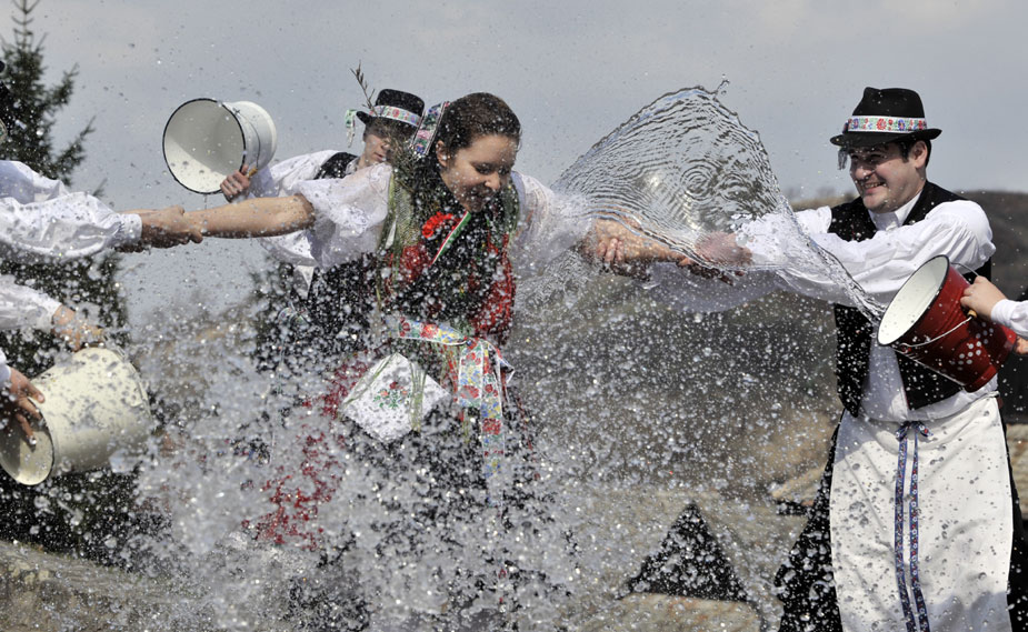 3月26日,在匈牙利首都布達(dá)佩斯以東被譽(yù)為世界文化遺產(chǎn)的霍洛克村,當(dāng)?shù)鼐用褚韵蚬媚锷砩蠞娝膫鹘y(tǒng)儀式慶祝復(fù)活節(jié)。此項古老習(xí)俗起源于公元2世紀(jì)。