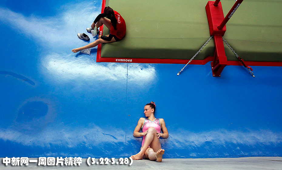 3月24日,阿根廷運(yùn)動員佩雷拉在比賽間隙靠墻拉伸雙腿。