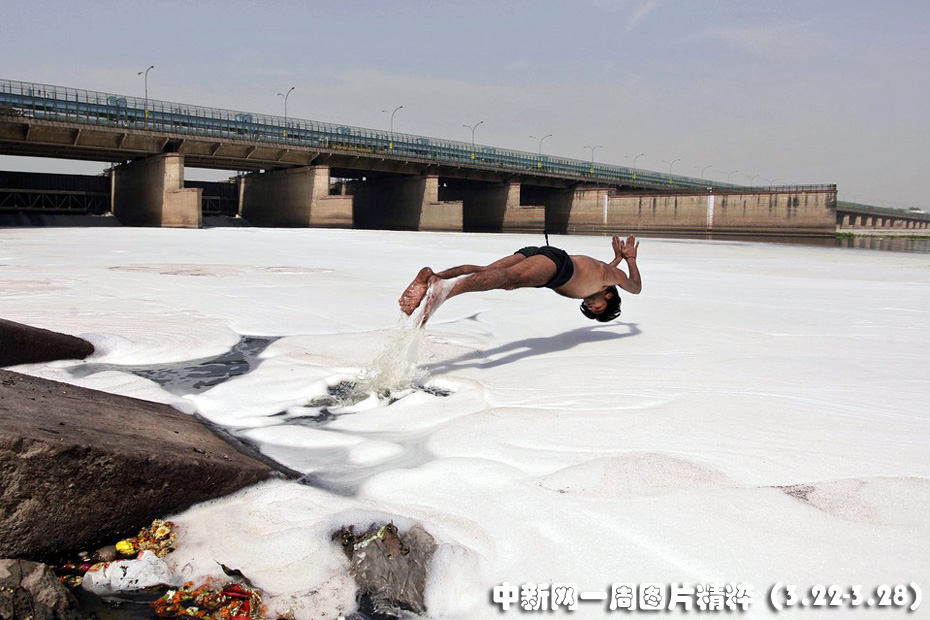 3月22日,新德里一名男子跳進(jìn)遭到污染的亞穆納河。有關(guān)官員稱(chēng),工廠(chǎng)無(wú)視法規(guī)傾倒未經(jīng)處理的污水和工業(yè)廢水,使有毒物質(zhì)流入河水中。