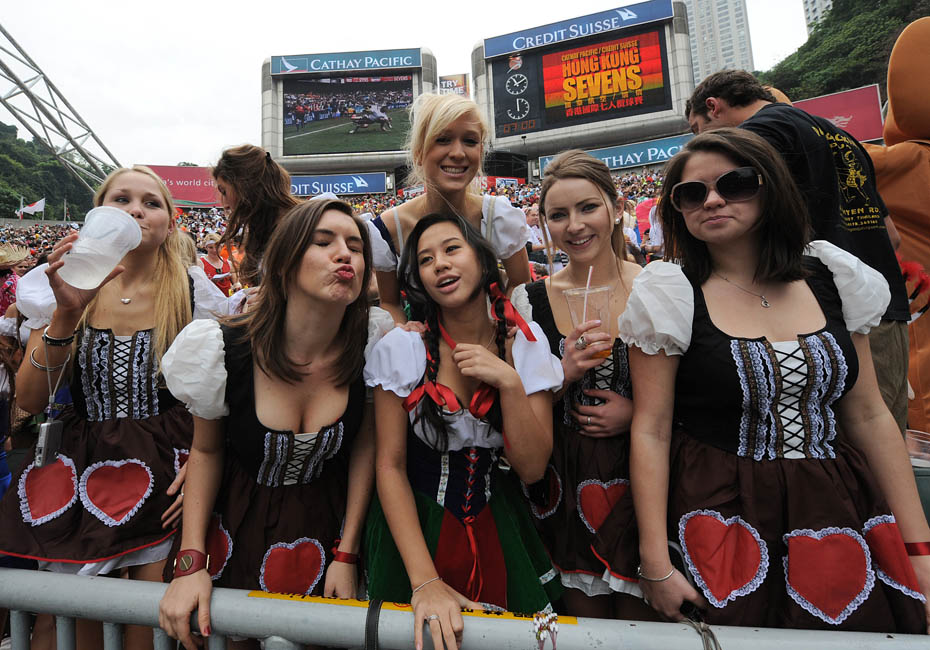 近日,“香港國際七人欖球賽”在大球場開鑼。來自世界各地的球迷盛裝捧場,狂樂連場賽事。圖片來源:中國新聞網(wǎng)