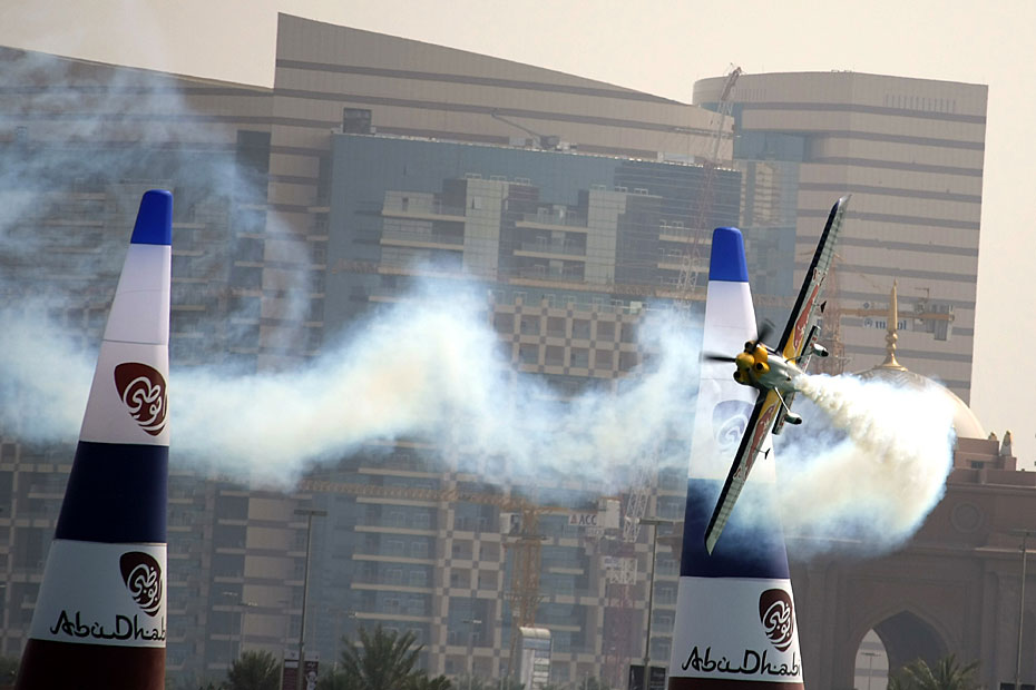 近日,紅牛飛行系列賽世界錦標賽預選賽在阿拉伯聯(lián)合酋長國阿布扎比舉行。參加比賽飛行員不但要有高速的駕駛技術,還要有勇往直前的膽量。圖片來源:中國新聞網(wǎng)