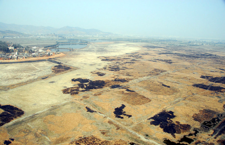 圖為2010年3月27日,干涸的大理祥云縣青海湖。目前云南的旱情仍然在加重,云南省防汛抗旱指揮部的最新數(shù)據(jù)顯示,截止到3月26號全省飲水困難的人口已經(jīng)達(dá)到了828萬,比一周前增加了10多萬人口。 小 智 攝