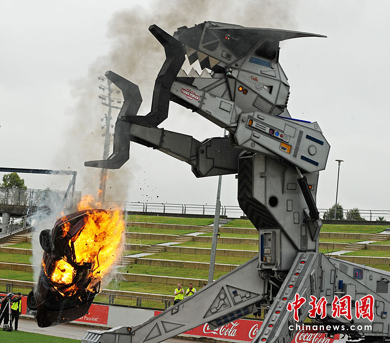 3月30日,一款重約27噸的機(jī)器怪獸在澳大利亞悉尼瞬間將一臺汽車摧毀。據(jù)悉,該款機(jī)器怪獸是由30多個公司花了兩年時間研究出來的。圖片來源:中國新聞網(wǎng)