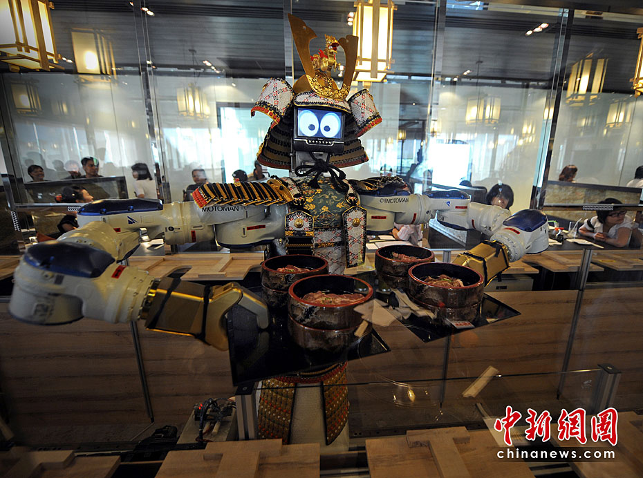這家日本餐館是泰國首家擁有機(jī)器人服務(wù)員的餐館,顧客可以通過電子觸摸屏進(jìn)行點(diǎn)菜,機(jī)器人則會(huì)帶來相應(yīng)的服務(wù)。機(jī)器人服務(wù)員能有節(jié)奏地跳舞,還可以自動(dòng)到餐桌為客人收走空盤子。