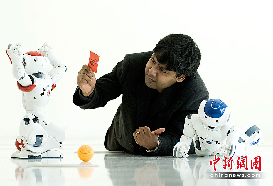機器人足球隊在英國愛丁堡國際科學節(jié)亮相,它們由愛丁堡大學研制而成。機器人足球隊員內置處理器可以感受周圍的環(huán)境和其他機器人的反應。圖片來源:中國新聞網