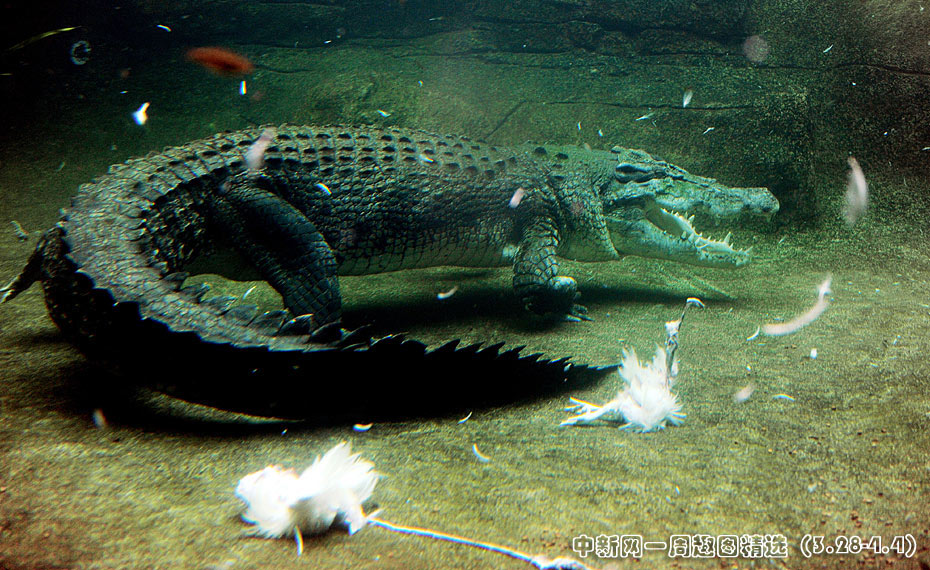 3月29日,澳大利亞悉尼野生動物園的一條鱷魚雷克斯正在享受它的美味——雞肉。圖片來源:中國新聞網(wǎng)>>點(diǎn)擊觀看詳細(xì)內(nèi)容