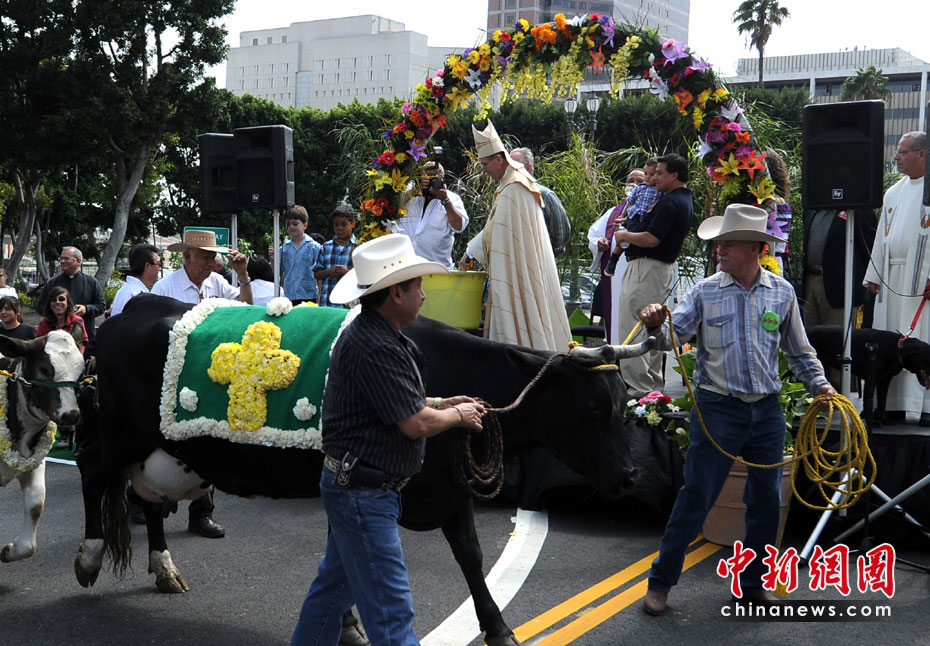 當(dāng)?shù)貢r(shí)間4月4日,美國(guó)洛杉磯人們?cè)跉g慶復(fù)活節(jié)的同時(shí),也為他們的寵物舉行了祝福儀式。這項(xiàng)祝福儀式每年舉行一次。圖片來(lái)源:中國(guó)新聞網(wǎng)