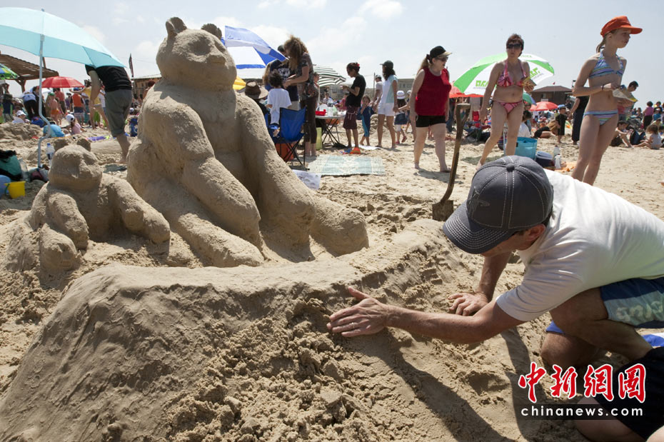 4月5日,以色列國(guó)家公園和自然保護(hù)區(qū)管理局在北城鎮(zhèn)Beit Yanai舉行了一年一度的沙雕大賽。世界眾多國(guó)家的沙雕愛(ài)好者前來(lái)參賽。圖片來(lái)源:中國(guó)新聞網(wǎng)