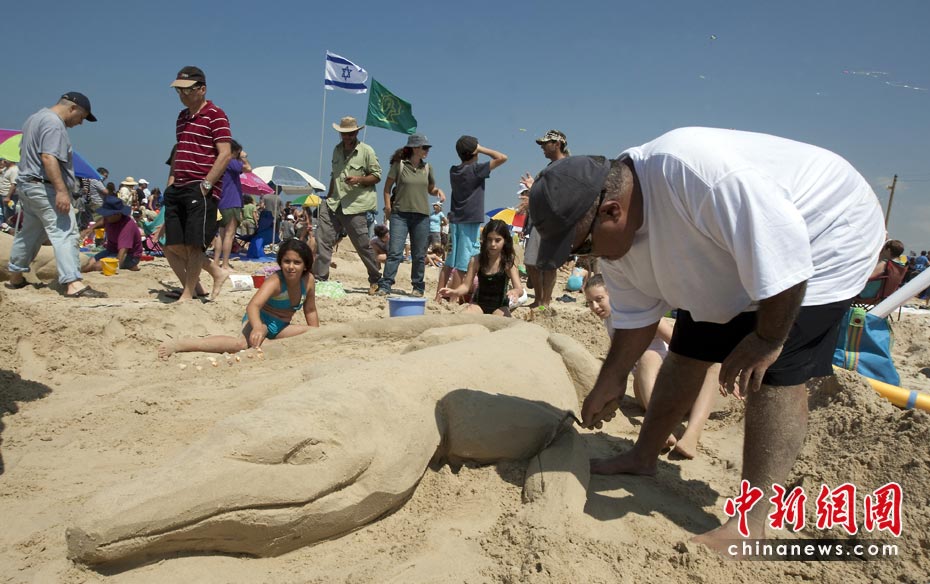 4月5日,以色列國家公園和自然保護(hù)區(qū)管理局在北城鎮(zhèn)Beit Yanai舉行了一年一度的沙雕大賽。世界眾多國家的沙雕愛好者前來參賽。圖片來源:中國新聞網(wǎng)