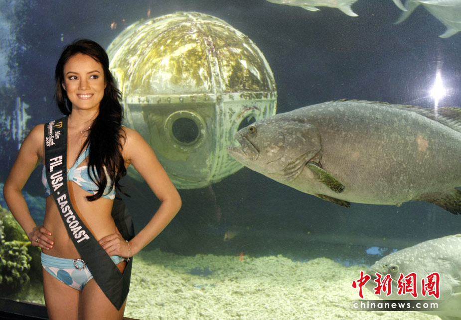 4月6日,參加菲律賓地球小姐候選的數(shù)十位美女亮相馬尼拉海洋公園,展示靚麗身材。圖片來源:中國新聞網(wǎng)