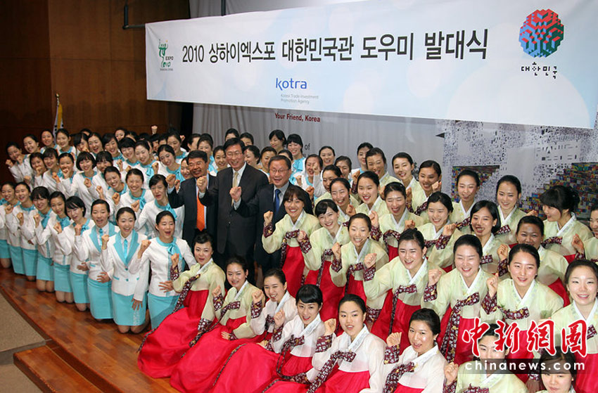 2010年4月5日,負(fù)責(zé)上海世博會(huì)韓國(guó)館宣傳和介紹的服務(wù)人員90人當(dāng)日在首爾舉行了組團(tuán)儀式。