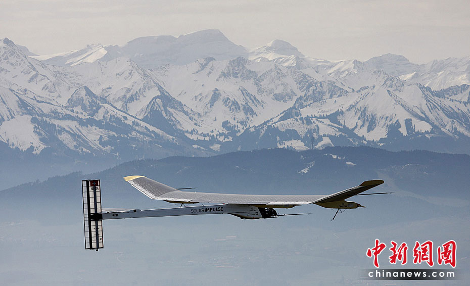 當(dāng)?shù)貢r(shí)間4月7日上午,全球首架依靠太陽能驅(qū)動(dòng)的飛機(jī)進(jìn)行首次試飛,預(yù)計(jì)此種新型飛機(jī)將在2011年實(shí)現(xiàn)環(huán)球航行。圖片來源:中國(guó)新聞網(wǎng)