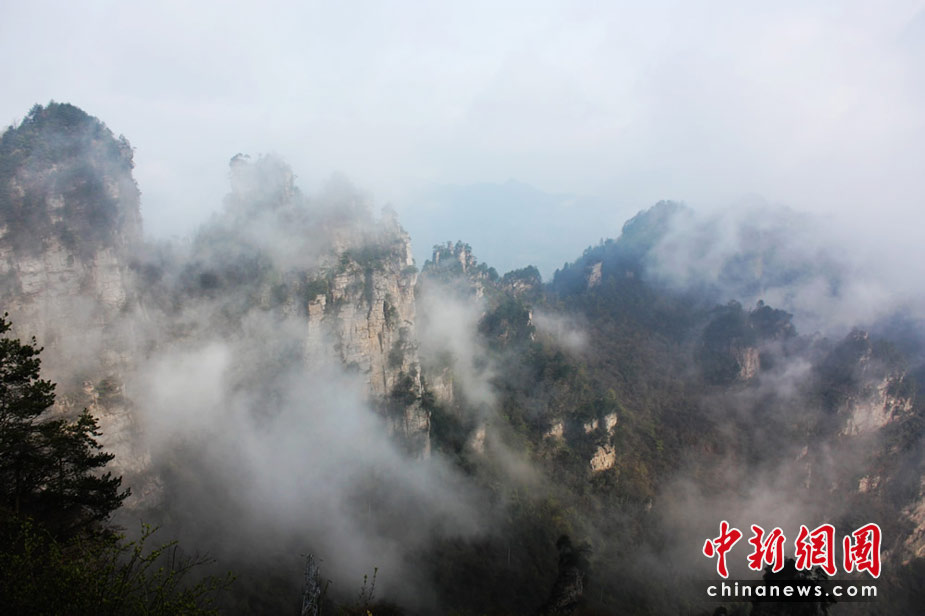 中新網(wǎng)張家界4月8日電(鄧道理 鄧霞)今晨,雨后初晴的湖南張家界天子山景區(qū)出現(xiàn)美麗壯觀的云海奇觀,風(fēng)起云涌之時(shí)砂巖峰林若隱若現(xiàn)、似夢(mèng)似幻,勝過《阿凡達(dá)》“懸浮山”仙境,令海內(nèi)外游客驚喜不已。
