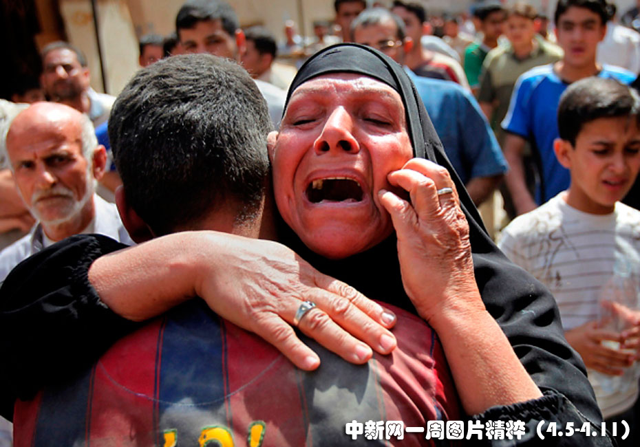 4月6日周二,一名女子在巴格達(dá)市中心的爆炸現(xiàn)場放聲痛哭。全城至少有五枚安放在公寓樓中的炸彈爆炸,還有一個(gè)市場也受到了炸彈的襲擊。