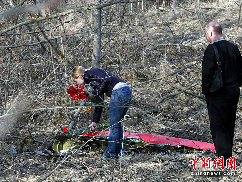4月11日,波蘭總統(tǒng)卡欽斯基專機在俄羅斯斯摩棱斯克軍用機場墜毀地點附近的道路開通,但是警戒線核心區(qū)仍然關閉。俄波調查人員正在現(xiàn)場工作。圖片來源:中國新聞網