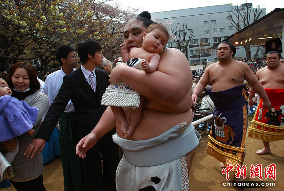 4月9日,來(lái)自世界各地的相撲選手齊聚日本東京靖國(guó)神社內(nèi)的相撲館參加為期一天的日本供奉大相撲比賽。圖片來(lái)源:中國(guó)新聞網(wǎng)