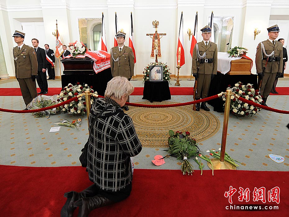 當?shù)貢r間4月13日14時,波蘭總統(tǒng)夫婦的遺體被安放在總統(tǒng)府最大的圓柱廳供民眾瞻仰和悼念?偨y(tǒng)卡欽斯基及其夫人的葬禮將于18日舉行。圖片來源:中國新聞網(wǎng)