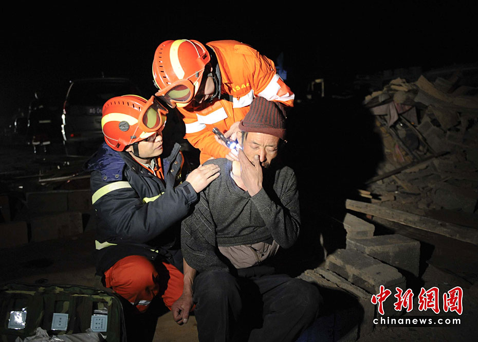 圖為4月15日凌晨1時,中國國際地震救援隊隊員在玉樹地震災(zāi)區(qū)展開救援工作,連夜救治玉樹地震傷員。中新社發(fā) 廖攀 攝