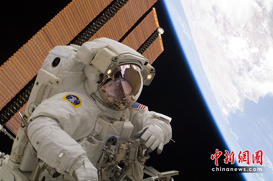 4月13日,美國航天局發(fā)布消息說,發(fā)現(xiàn)號航天飛機(jī)兩名宇航員完成了“發(fā)現(xiàn)號”本次升空以來的第三次,也是最后一次太空行走。圖片來源:中國新聞網(wǎng)