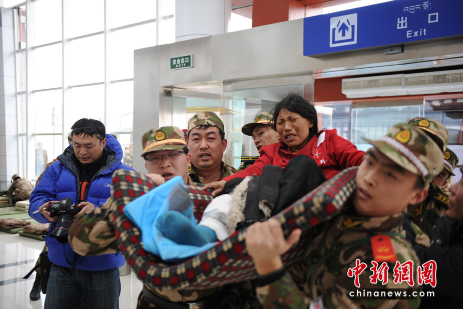 4月15日,玉樹(shù)地震傷員正源源不斷的從玉樹(shù)機(jī)場(chǎng)乘飛機(jī),被運(yùn)往成都等地救治。 中新社/中新網(wǎng)記者 符永康 攝