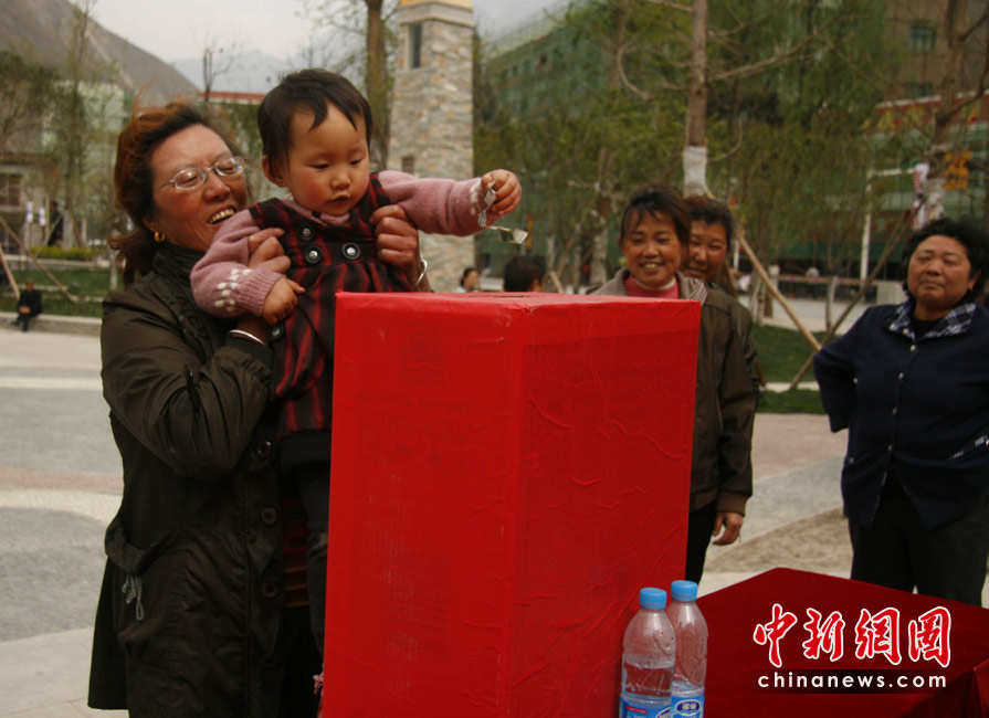 4月15日,汶川發(fā)動(dòng)各方力量向青海玉樹(shù)災(zāi)區(qū)籌集善款,汶川縣政府向村級(jí)以上單位發(fā)出捐款通知,在汶川縣鍋莊廣場(chǎng)啟動(dòng),汶川紅十字會(huì)在當(dāng)天就籌得善款5萬(wàn)余元。中新社發(fā) 汶川宣傳部 供