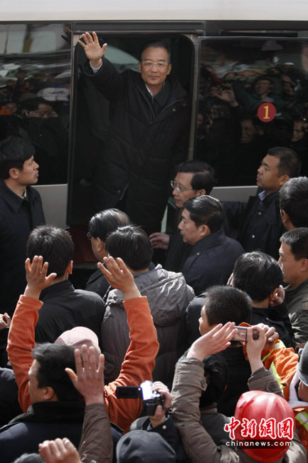 2010年4月16日,中國(guó)國(guó)務(wù)院總理溫家寶在青海省玉樹(shù)藏族自治州玉樹(shù)縣地震災(zāi)區(qū)視察救援現(xiàn)場(chǎng)。4月14日07時(shí)49分許,青海省玉樹(shù)藏族自治州玉樹(shù)縣(北緯33.1,東經(jīng)96.7)發(fā)生7.1級(jí)地震。中新社發(fā) 盛佳鵬 攝