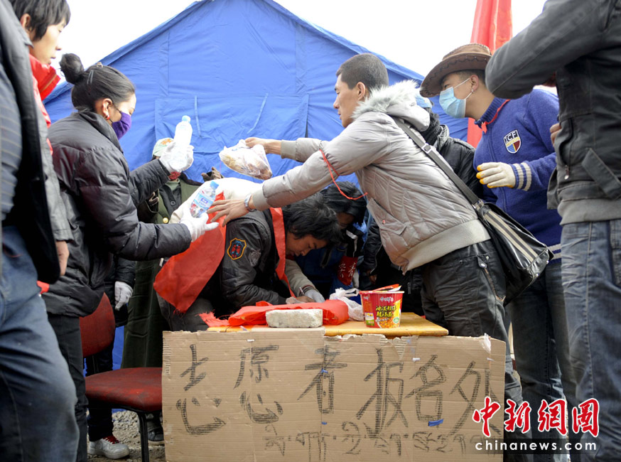 4月16日,青海玉樹體育場受災民眾安置點,來自全國各地的志愿者集結在一起將有序開展幫助救援工作,目前報名人數(shù)已經(jīng)過百。中新社發(fā) 廖攀 攝