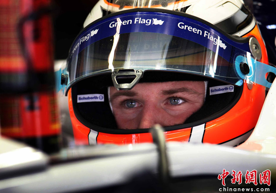 4月16日,2010國際汽聯(lián)F1世界錦標(biāo)賽上海站在上海國際賽車場開始車手第一、第二次練習(xí)賽。圖為代表威廉姆斯車隊出戰(zhàn)的德國車手霍肯伯格。中新社記者 任晨鳴 攝