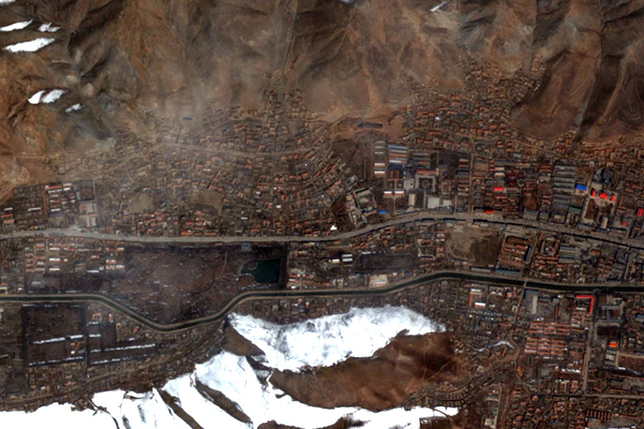 利用對地觀測中心2010年4月16日獲取的高分辨率航空遙感數據,提取出玉樹州結古鎮(zhèn)城區(qū)范圍內地震破壞最嚴重或典型地區(qū),使之與GoogleEarth中相應位置的震前遙感衛(wèi)星數據進行對比,直觀展現結古鎮(zhèn)在此次地震中的受影響程度。圖片來源:中國科學院