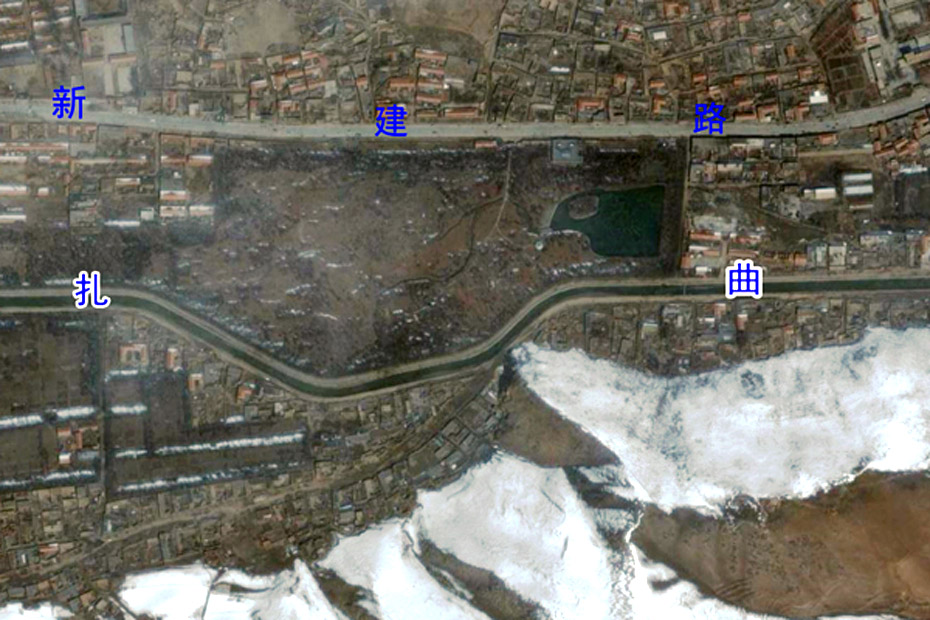 利用對(duì)地觀測(cè)中心2010年4月16日獲取的高分辨率航空遙感數(shù)據(jù),提取出玉樹(shù)州結(jié)古鎮(zhèn)城區(qū)范圍內(nèi)地震破壞最嚴(yán)重或典型地區(qū),使之與GoogleEarth中相應(yīng)位置的震前遙感衛(wèi)星數(shù)據(jù)進(jìn)行對(duì)比,直觀展現(xiàn)結(jié)古鎮(zhèn)在此次地震中的受影響程度。圖片來(lái)源:中國(guó)科學(xué)院