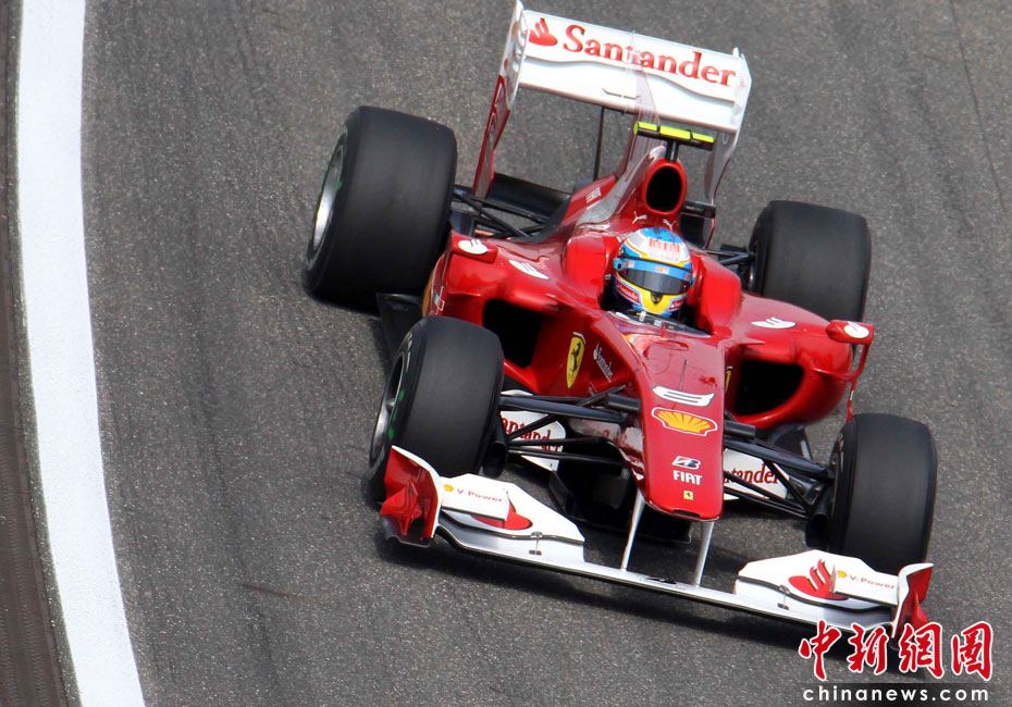4月17日下午,2010國(guó)際汽聯(lián)F1世界錦標(biāo)賽上海站在上海國(guó)際賽車場(chǎng)舉行排位賽,代表紅牛車隊(duì)出戰(zhàn)的德國(guó)車手維特爾獲得桿位,隊(duì)友、澳大利亞車手韋伯獲得第二名,法拉利車隊(duì)的西班牙車手阿隆索獲得第三名。中新社記者 任晨鳴 攝
