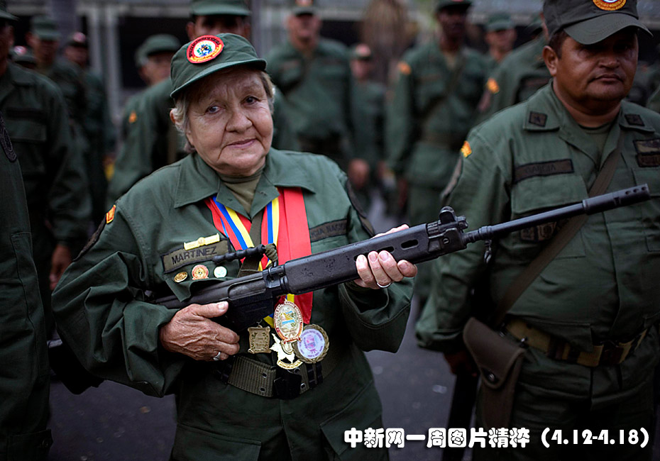 4月13日周二是委內瑞拉的“民兵日”,一位老民兵手持步槍在首都加拉加斯參加紀念活動。總統(tǒng)查韋斯當天發(fā)表講話,以此紀念他在八年前被政變短暫推翻后重新執(zhí)政。