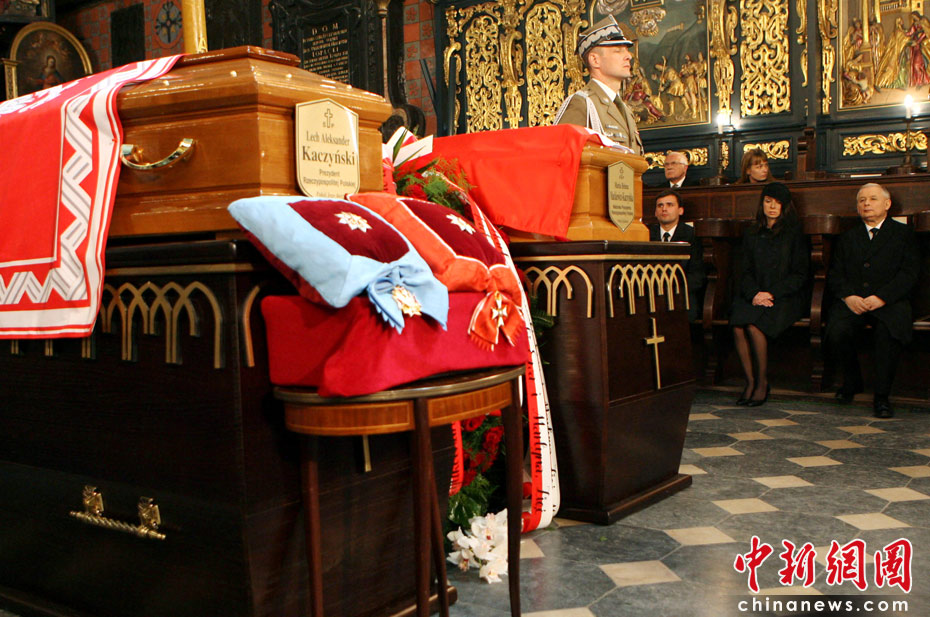 當?shù)貢r間4月18日,卡欽斯基夫婦的葬禮在波蘭南部城市克拉科夫舉行。波蘭總統(tǒng)卡欽斯基及其夫人乘坐的專機10日在俄羅斯斯摩棱斯克失事,機上人員全部遇難。圖片來源:中國新聞網(wǎng)