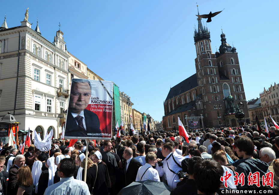 當(dāng)?shù)貢r(shí)間4月18日,卡欽斯基夫婦的葬禮在波蘭南部城市克拉科夫舉行。波蘭總統(tǒng)卡欽斯基及其夫人乘坐的專機(jī)10日在俄羅斯斯摩棱斯克失事,機(jī)上人員全部遇難。圖片來(lái)源:中國(guó)新聞網(wǎng)