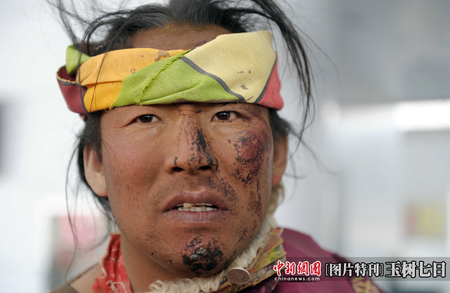 圖為4月15日下午,云南邊防總隊醫(yī)療救援隊剛下飛機立即投入傷員轉(zhuǎn)移工作,官兵們在玉樹機場從救護車上抬下地震傷員,進行轉(zhuǎn)移安置和治療。中新社發(fā) 陳文 攝